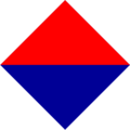 Divisional Order 81 decreed a rectangular patch on the upper sleeve of the uniform 1.25 inches (32 mm) by 2.75 inches (70 mm). Engineers were ordered to change the colour of their uniform patch from khaki to purple so that it was more visible when worn against the khaki sleeve of the uniform. Artillery were ordered to adopt diagonally divided red over blue patches. As further divisions created colour patches for their uniforms, the shape of the patch indicated the division.[14]
