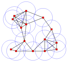 Beginning with the work of Huson & Sen (1995), unit disk graphs have been used in computer science to model the topology of ad hoc wireless communication networks. In this application, nodes are connected through a direct wireless connection without a base station. It is assumed that all nodes are homogeneous and equipped with omnidirectional antennas. Node locations are modelled as Euclidean points, and the area within which a signal from one node can be received by another node is modelled as a circle. If all nodes have transmitters of equal power, these circles are all equal. Random geometric graphs, formed as unit disk graphs with randomly generated disk centres, have also been used as a model of percolation and various other phenomena.[1]