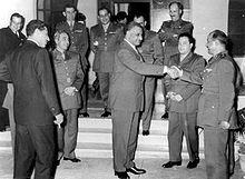 Without any close allies to watch over Syria, Nasser was unaware of the growing unrest of the military. On September 28 a group of officers staged a coup and declared Syria's independence from the UAR. Though the coup leaders were willing to renegotiate a union under terms they felt would put Syria on an equal footing with Egypt, Nasser refused such a compromise. He initially considered sending troops to overthrow the new regime, but chose not to once he was informed that the last of his allies in Syria had been defeated.[22] In speeches that followed the coup, Nasser declared he would never give up his goal of an ultimate Arab union. However, he would never again achieve such a tangible victory toward this goal.
