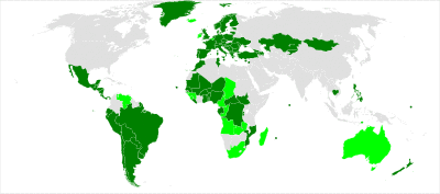 The text of the Convention was adopted by the United Nations General Assembly on 10 December 1984[1] and, following ratification by the 20th state party,[3] it came into force on 26 June 1987.[1] 26 June is now recognized as the International Day in Support of Victims of Torture, in honor of the Convention. Since the convention's entry into force, the absolute prohibition against torture and other acts of cruel, inhuman, or degrading treatment or punishment has become accepted as a principle of customary international law.[6] As of June 2020, the Convention has 170 state parties.[1]