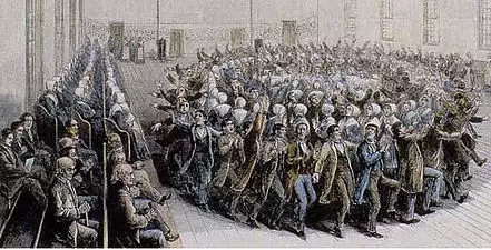Ann Lee's doctrine was simple: confession of sins was the door to the spiritual regeneration, and absolute celibacy was the rule of life.[43] Shakers were so chaste that men and women could not shake hands or pass one another on the stairs.[44]