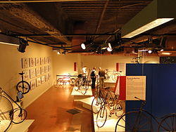 The basement includes an extensive display of historic bicycles that includes Draisine and Velocipede models. The display also includes landmark bicycles from the 1950s through the present that illustrate the rapid recent evolution of the bicycle.