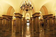 The crypt originated with the initial designs drawn up for the United States Capitol by William Thornton, which called for a rotunda to be placed between the two wings of the building.[1] The room beneath the rotunda was therefore required to support the large space above it. However, construction did not begin on the central part of the Capitol, where the rotunda and the room beneath it were located, until after the War of 1812.