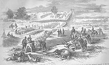 At the start of the civil war, a system of paroles operated. Captives agreed not to fight until they were officially exchanged. Meanwhile, they were held in camps run by their army. They were paid, but they were not allowed to perform any military duties.[151] The system of exchanges collapsed in 1863 when the Confederacy refused to exchange black prisoners. After that, about 56,000 of the 409,000 POWs died in prisons during the war, accounting for nearly 10 percent of the conflict's fatalities.[152]