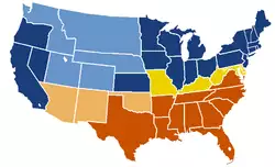 Sectionalism resulted from the different economies, social structure, customs, and political values of the North and South.[83][84] Regional tensions came to a head during the War of 1812, resulting in the Hartford Convention, which manifested Northern dissatisfaction with a foreign trade embargo that affected the industrial North disproportionately, the Three-Fifths Compromise, dilution of Northern power by new states, and a succession of Southern presidents. Sectionalism increased steadily between 1800 and 1860 as the North, which phased slavery out of existence, industrialized, urbanized, and built prosperous farms, while the deep South concentrated on plantation agriculture based on slave labor, together with subsistence agriculture for poor whites. In the 1840s and 1850s, the issue of accepting slavery (in the guise of rejecting slave-owning bishops and missionaries) split the nation's largest religious denominations (the Methodist, Baptist, and Presbyterian churches) into separate Northern and Southern denominations.[85]