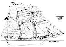 Under the enabling legislation that authorized the Revenue-Marine, the "System of Cutters", consisting of ten vessels were initially ordered and constructed.[3] Two cutters were to be assigned to "the coasts of Massachusetts and New Hampshire; one for Long Island Sound; one for New York; one for the Bay of Delaware; two for the Chesapeake (these of course to ply along the neighboring coasts); one for North Carolina; and one for Georgia".[4] On 21 March 1791 the first seven masters were commissioned by President George Washington. Among those commissioned were Hopley Yeaton and John Foster Williams of Massachusetts, Jonathan Maltbie of Connecticut, Patrick Dennis of New York, James Montgomery of Pennsylvania, Simon Gross of Maryland, and Richard Taylor of Virginia. William Cooke of North Carolina was commissioned on 25 April 1791, Robert Cochrane of South Carolina on 8 May 1791, and 20 May 1791 John Howell of Georgia.[5] Each cutter was constructed where it was to be assigned; a move by Hamilton to satisfy members of Congress and gain their votes for the establishment of the service.[6] Washington suggested to Hamilton that it would be advantageous to have each master supervise the construction of his own cutter; a suggestion that Hamilton put into use along with a limitation that each cutter cost no more than US$1,000.[6] Hamilton's cost restrictions proved unrealistic for three of the new cutters, Massachusetts cost US$2,050, Scammel cost US$1,255, and General Green cost over US$1,500.[7][Note 1]