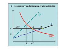 While contracts often determine wages and terms of employment, the law refuses to enforce contracts that do not observe basic standards of fairness for employees.[105] Today, the Fair Labor Standards Act of 1938 aims to create a national minimum wage, and a voice at work, especially through collective bargaining should achieve fair wages. A growing body of law also regulates executive pay, although a system of "maximum wage" regulation, for instance by the former Stabilization Act of 1942, is not currently in force. Historically, the law actually suppressed wages, not of the highly paid, by ordinary workers. For example, in 1641 the Massachusetts Bay Colony legislature (dominated by property owners and the official church) required wage reductions, and said rising wages "tende to the ruin of the Churches and the Commonwealth".[106] In the early 20th century, democratic opinion demanded everyone had a minimum wage, and could bargain for fair wages beyond the minimum. But when states tried to introduce new laws, the US Supreme Court held them unconstitutional. A right to freedom of contract, argued a majority, could be construed from the Fifth and Fourteenth Amendment's protection against being deprived "of life, liberty, or property, without due process of law". Dissenting judges argued that "due process" did not affect the legislative power to create social or economic rights, because employees "are not upon a full level of equality of choice with their employer".[107]