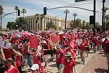Although federal law guarantees the right to strike, American labor unions face the most severe constraints in the developed world in taking collective action. First, the law constrains the purposes for which strikes are allowed. The National Labor Relations Act of 1935 only covers "employees" in the private sector, and a variety of state laws attempt to suppress government workers' right to strike, including for teachers,[322] police and firefighters, without adequate alternatives to set fair wages.[323] Workers have the right to take protected concerted activity.[324] But NLRB v Insurance Agents' International Union held that although employees refusing to perform part of their jobs in a "partial strike" was not a failure to act in good faith, they could be potentially be discharged: perversely, this encourages workers to conduct an all-out strike instead.[325] Second, since 1947 the law made it an "unfair labor practice" for employees to take collective action that is not a "primary strike or primary picketing" against the contractual employer.[326] This prohibition on solidarity action includes a ban on employees of a subsidiary corporation striking in concert with employees of a parent corporation, employees striking with employees of competitors, against outsourced businesses, or against suppliers.[327] However the same standards are not applied to employers: in NLRB v Truck Drivers Local 449, the Supreme Court held that a group of seven employers were entitled to lock out workers of a union at once, in response to a strike at just one of the employers by the union.[328] This said, employees may peacefully persuade customers to boycott any employer or related employer, for instance by giving out handbills.[329] Third, a union is bound to act in good faith if it has negotiated a collective agreement, unless an employer commits an unfair labor practice. The union must also give 60 days warning before undertaking any strike while a collective agreement is in force.[330] An employer must also act in good faith, and an allegation of a violation must be based on "substantial evidence": declining to reply to the National Labor Relations Board's attempts to mediate was held to be insubstantial.[331]
