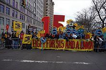 A contract of employment can always create better terms than statutory minimum rights. But to increase their bargaining power to get better terms, employees organize labor unions for collective bargaining. The Clayton Act of 1914 guarantees all people the right to organize,[6] and the National Labor Relations Act of 1935 creates rights for most employees to organize without detriment through unfair labor practices. Under the Labor Management Reporting and Disclosure Act of 1959, labor union governance follows democratic principles. If a majority of employees in a workplace support a union, employing entities have a duty to bargain in good faith. Unions can take collective action to defend their interests, including withdrawing their labor on strike. There are not yet general rights to directly participate in enterprise governance, but many employees and unions have experimented with securing influence through pension funds,[7] and representation on corporate boards.[8]