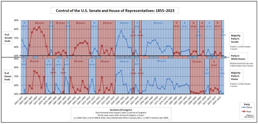 Party control of legislative and executive branches since 1861