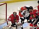 In the early days of colonization, many European settlers were subject to food shortages, disease, and attacks from Native Americans. Native Americans were also often at war with neighboring tribes and European settlers. In many cases, however, the natives and settlers came to depend on one another. Settlers traded for food and animal pelts; natives for guns, tools and other European goods.[54] Natives taught many settlers to cultivate corn, beans, and other foodstuffs. European missionaries and others felt it was important to "civilize" the Native Americans and urged them to adopt European agricultural practices and lifestyles.[55][56] However, with the increased European colonization of North America, the Native Americans were displaced and often killed.[57] The native population of America declined after European arrival for various reasons,[58][59][60] primarily diseases such as smallpox and measles.[61][62]