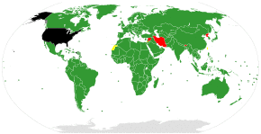 The United States often opposed Third World movements that it viewed as Soviet-sponsored and occasionally pursued direct action for regime change against left-wing governments, even occasionally supporting authoritarian right-wing regimes.[135] American troops fought communist Chinese and North Korean forces in the Korean War of 1950–53.[136] The Soviet Union's 1957 launch of the first artificial satellite and its 1961 launch of the first crewed spaceflight initiated a "Space Race" in which the United States became the first nation to land a man on the Moon in 1969.[136] A proxy war in Southeast Asia eventually evolved into the Vietnam War (1955–1975), with full American participation.[137]