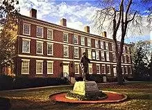 The Thirteen Colonies (New Hampshire, Massachusetts, Connecticut, Rhode Island, New York, New Jersey, Pennsylvania, Delaware, Maryland, Virginia, North Carolina, South Carolina, and Georgia) that would become the United States of America were administered by the British as overseas dependencies.[69] All nonetheless had local governments with elections open to most free men.[70] With extremely high birth rates, low death rates, and steady settlement, the colonial population grew rapidly, eclipsing Native American populations.[71] The Christian revivalist movement of the 1730s and 1740s known as the Great Awakening fueled interest both in religion and in religious liberty.[72]