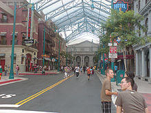 | New York | Themed after post-modern New York City. Features replicas of New York landmarks. The area is enhanced by neon lights and flanked by street facades. |