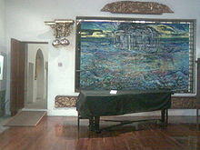 Many spaces in the complex are suited to showcase exhibitions of art and culture.[2] The University houses the Museo de la Indumentaria Mexicana "Luis Márquez Romay" (The Luis Márquez Romay Museum of Mexican Attire) .[9] It displays an important collection of traditional Mexican attires, many of which were donated by Carmen Romano, who was First Lady of Mexico from 1976 to 1982.[2] The Museum also hosts temporary exhibits such as the art exhibit “Ocho conjuros para sanar el alma” (Eight spells to heal the soul) as part of the 25th annual Festival de Mexico in the historic center of Mexico City.[9] In 2007, there was an exhibition called “Monjas coronadas” (Crowned Nuns) which displayed artifacts related to the ritual of “marrying God” when nuns take their vows. It included the crowns which were placed on the nun's head, some quite large, during the colonial period.[3] Concerts and art exhibits are showcased in the Former Church of San Jerónimo as well.[2] One of these exhibits was that of a large touring sculpture called “Traición” (Betrayal) .[10] The school also has a collection of musical instruments including four antique pianos, donated and currently used for concerts.[2]