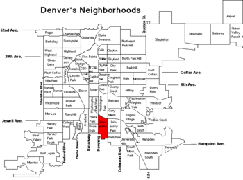- City and County of Denver map specifying University Neighborhood boundaries, Accessed May 2, 2008