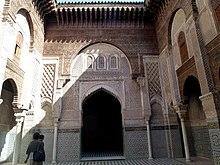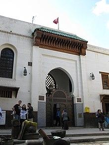 The University of al-Qarawiyyin (Arabic: جامعة القرويين; Berber : ⵜⴰⵙⴷⴰⵡⵉⵜ ⵏ ⵍⵇⴰⵕⴰⵡⵉⵢⵢⵉⵏ; French: Université Al Quaraouiyine), also written Al-Karaouine or Al Quaraouiyine, is a university located in Fez, Morocco. It was founded as a mosque by Fatima al-Fihri in 859 and subsequently became one of the leading spiritual and educational centers of the historic Muslim world. It was incorporated into Morocco's modern state university system in 1963 and was officially renamed "University of Al Quaraouiyine" two years later.[1] The mosque building itself is also a significant complex of historical Moroccan and Islamic architecture encompassing elements from many different periods of Moroccan history.[5]