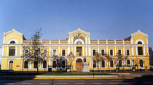 The University of Chile (Spanish: Universidad de Chile) is a public university in Santiago, Chile. It was founded on November 19, 1842 and inaugurated on September 17, 1843.[1] It is the oldest and the most prestigious in the country. It was established as the continuation of the former colonial Royal University of San Felipe (1738)[2] (Spanish: Real Universidad de San Felipe), and has a rich history in academic, scientific and social outreach. The university seeks to solve national and regional issues and to contribute to the development of Chile. It is recognized as one of the best universities in Latin America for its leadership and innovation in science, technology, social sciences, and arts through the functions of creation, extension, teaching, and research.
