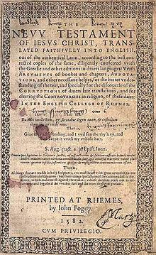The founding of the University of Douai coincided with the presence of a large number of English Catholics living at Douai, in the wake of the accession of Elizabeth I and the reimposition of Protestantism in England. This presence, and the role of the University prompted William Allen to found a seminary in Douai in 1569 for English Catholic priests, whose studies were in part linked to the University and who were trained there to return to their country. It was at this English College at Douai that the English translation of the Bible known as the Douay-Rheims Version was completed in 1609. The first English Catholic Bible incorporating the Rheims New Testament and the Douay Old Testament in a single volume was not printed until 1764.