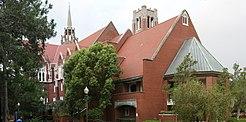 The City of Gainesville, led by its mayor William Reuben Thomas, campaigned to be home to the new university.[26] On July 6, 1905, the Board of Control selected Gainesville for the new university campus. Andrew Sledd, president of the pre-existing University of Florida at Lake City, was selected to be the first president of the new University of the State of Florida. The 1905–1906 academic year was a year of transition; the new University of the State of Florida was legally created, but operated on the campus of the old University of Florida in Lake City until the first buildings on the new campus in Gainesville were complete. Architect William A. Edwards designed the first official campus buildings in the Collegiate Gothic style. Classes began on the new Gainesville campus on September 26, 1906, with 102 students enrolled.