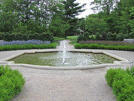 The garden was dedicated to the memory of David Porter in June 1995. The salutation gateway greets visitors. Along with the Kenninji-Gaki bamboo fence the garden boasts a stone bridge that takes visitors across a reflecting pool. Beyond the bridge is a small teahouse. The teahouse allows visitors to escape stress and to attain serenity. The garden contains woody and herbaceous plants that follow a specific theme.[14] Features of Twentieth- Century American landscaping were taken from traditional European gardens.[3] However the new limitations of urban living make certain features of the European garden unsuitable. As such there has been a renewed interest in Oriental landscaping. Japanese gardens have been of particular interest as they use few well- chosen features including the use of evergreens which make them well suitable for urban environments. It is now more common to see elements like those included in this Japanese garden, which use naturalistic groupings of plants, in European and American designs.