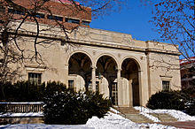 By 1915, the overcrowded, wood-constructed General Library was designated a fire hazard by the Board of Regents.[5] After this, a new building was finally constructed. Designed by architect Albert Kahn, the library building (which is today the north building of the Harlan Hatcher Graduate Library) was dedicated on January 7, 1920.[5] The same year, Professor Francis W. Kelsey (who founded the university's Kelsey Museum of Archaeology) added 617 ancient Egyptian papyri to the university's holdings, beginning the University of Michigan Papyrus Collection, which became the largest in the Americas.[5]