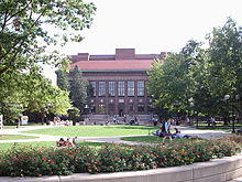 Before the university's first years, books were stored in various places around campus, including at the Law School and in various professors' homes.[5] In 1856, the North Wing of the University Building was remodeled, and books centralized in the University's Library and Museum there.[5] In 1863, the Library moved to the Law Building.[5] In 1883, with Raymond Cazallis Davis (chief librarian) as a motivating force in it accomplishment, the university's first library building was completed. Within twelve years of its construction the building was already too small for the growing collection.[5] Between 1870 and 1940 the collection grew rapidly, from 17,000 to 941,500.[5]