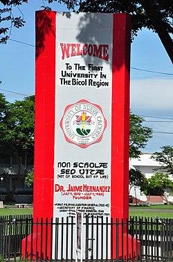 Founded by Dr. Jaime Hernandez in 1948, it has grown to become one of the leading institutions of higher learning in the country. The campus is centrally located in the City of Naga, Camarines Sur, Philippines. All course offerings are recognized by the government and the Colleges of Arts and Sciences, Education and Commerce are accredited by the Philippine Association of Colleges and Universities Commission on Accreditation (PACU-COA).[4]