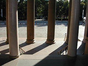 The university's old campus, strongly influenced by Prussian architect Karl Friedrich Schinkel's neoclassical style, is located in the centre of Oslo near the National Theatre, the Royal Palace and the Parliament. The old campus was then occupied by the Faculty of Law and most of the other faculties have been transferred to the Blindern campus in the suburban West End, erected in the 1930s. The Faculty of Medicine is split between several university hospitals in the Oslo area.