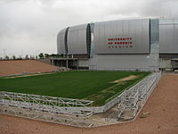 The stadium hosted the WWE event WrestleMania XXVI which took place on March 28, 2010, with 72,219 fans in attendance.[23] This was the first WrestleMania since WrestleMania XI with a non-title match as a main event, the first WrestleMania to be held in the state of Arizona and the third to be held in an open-air venue,[23][24] after WrestleMania IX and WrestleMania XXIV. The event grossed $5.8 million in ticket sales, making the event the highest grossing and attended entertainment event held at the University of Phoenix Stadium.[25]