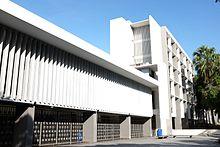 The University of Puerto Rico was established in Río Piedras in 1903. The first buildings were the Normal School (1902), the Model School (1903), and the residence for the Principal (1903), next to the Central Road (today, Ponce de Leon Avenue). Over the years, the development of the University occurred somewhat spontaneously. In 1908 the architectural firm of Clark, Howe and Homer designed a new façade for the Model School in the California Mission Style. In 1909 a milk processing building was constructed in an agricultural area, east of the academic center. Arts and Crafts’ Workshop buildings, a Library and a Gymnasium were projected, as well as the grand stand and the fence (all demolished). In 1912 began the construction for the Memorial Hall (Baldorioty building) and in 1918 buildings for the Law School and the School of Pharmacy were in the works. In 1924 the Chicago firm of urbanists Bennett, Parsons and Frost were contacted to design a master plan for the future development of the University.[16] It wasn't until 1935, with the establishment of the Puerto Rico Reconstruction Administration (PRRA) and the large sum of federal funds that it invested for public works in Puerto Rico, that the partial design and construction of the so-called Plan Parson began. Under the supervision of architect Rafael Carmoega, a group of local architects designed what is known as “el Cuadrángulo” (the Quadrangle).[17] However, from the 1940s onward a new architectural paradigm, which discarded historical vocabularies and incorporated attitudes learned from Germany and from the studio of Frank Lloyd Wright, stemmed from German émigré Henry Klumb. For 20 years Klumb was sole architect for the University of Puerto Rico, designing buildings for the campuses at Río Piedras and Mayagüez until in 1966. At that time chancellor Jaime Benítez assigned the design of the General Studies building to the architectural firm of Toro & Ferrer. Other buildings for the University have been designed by architects Antonio Marqués Carrión (sport facilities, 1971); José Firpi (student residence Torre Norte, 1971); the firm of Reed, Torres, Beauchamp & Marvel (new Education Faculty Building, 1974 and the first expansion to the Faculty of Natural Sciences, 1978); the firm of García & Landray (second expansion the Faculty of Natural Sciences, 1989); GDO Arquitectos (School of Architecture, 2001) and Toro Ferrer (new General Studies building, 2007).