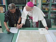 The Pontifical and Royal University of Santo Tomas, the Catholic University of the Philippines, or simply the University of Santo Tomas (UST), is a private, Catholic research university in Manila, Philippines. Founded on April 28, 1611, by Spanish friar Miguel de Benavides, Archbishop of Manila, it has the oldest extant university charter in the Philippines and in Asia,[3][4] and is one of the world's largest Catholic universities in terms of enrollment found on one campus.[5][6] The university is run by the Order of Preachers. UST is the only university to have been visited by three popes four times: once by Pope Paul VI on November 28, 1970, twice by Pope John Paul II on February 18, 1981, and January 13, 1995, and once by Pope Francis on January 18, 2015.[7] The patron of the university is St. Thomas Aquinas, while St. Catherine of Alexandria is the patroness.[8]