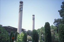 University of Tehran main entrance was designed in 1965 by Korosh Farzami, one of the students of the faculty of Fine Arts of the university. The structural engineer was an Armenian-Iranian by the name of Simon Sarkissian. Due to the importance of the university, these gates have gradually become the symbol of Iran's Higher Education system. University of Tehran gates are depicted on the reverse of the Iranian 500 rials banknote.[17]