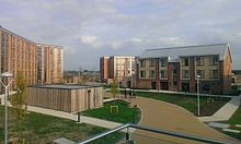 In 2004, plans were finalised for a 117 hectare extension to the campus, initially called Heslington East, designed to mirror the existing Heslington West campus. They are now known as Campus East and Campus West. The plans set out that the new campus would be built on arable land between Grimston Bar park and ride car park and Heslington village. The land was removed from the green belt especially for the purpose of extending the university. After a lengthy consultation and a public inquiry into the proposals[30] in 2006, the Secretary of State for Communities and Local Government gave the go-ahead in May 2007.[31]