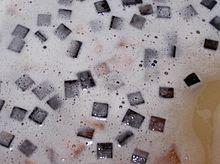 Although oak barrels have long been used by winemakers, many wineries now use oak wood chips for aging wine more quickly and also adding desired woody aromas along with vanilla flavors. It is a common misconception that oak imparts butter flavors to wine. This is not so. The butter flavors come from lactic acid, naturally present in the wine, converted during malolactic fermentation to diacetyl. This process reverses itself, although the addition of sulfur dioxide prevents this, and the diacetyl remains. Oak chips can be added during fermentation or during aging. In the latter case, they are generally placed into fabric sacks and placed into the aging wine. The diversity of chips available gives winemakers numerous options. Oak chips have the benefit of imparting intense oak flavoring in a matter of weeks while traditional oak barrels would need a year or more to convey similar intensity. Critics claim that the oak flavoring from chips tend to be one-dimensional and skewed towards the vanilla extract with the wines still lacking some of the physical benefits that barrel oak imparts.[16] The use of oak powder is also less common than chips, although they are a very practical alternative if oak character is to be introduced during fermentation. Oak planks or staves are sometimes used, either during fermentation or aging. Wines made from these barrel alternatives typically do not age as well as wines that are matured in barrels.[7] Improvements in micro-oxygenation have allowed winemakers to better mimic the gentle aeration of oak barrels in stainless steel tanks with oak chips.[19]