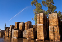 Even though American coopers may use a kiln-dry method to season the wood, almost all others will season American oak in exactly the same way as French.[11] Open air seasoning has the advantage of leaching undesirable chemical components and bitter tannins, mellowing the oak in a manner that kiln-dry methods are incapable of replicating.[8] Even though sun, rain, and wind may suffice in most cases to season oak, in drier climates coopers - such as Tonelería Nacional - apply up to 2000 mm (80 in) of water a year to their wood stacks in order to facilitate the seasoning process.