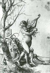 Urs Graf (c. 1485 in Solothurn, Switzerland – possibly before 13 October 1528)[1] was a Swiss Renaissance goldsmith, painter and printmaker (of woodcuts, etchings and engravings), as well as a Swiss mercenary. He only produced two etchings, one of which dates from 1513 – the earliest known etching for which a date has been established. However, his woodcuts are considered of greater significance, particularly as he is attributed with the invention of the white-line woodcut technique, where white lines create the image on a black background. He also produced a few engravings, including copies of works by Martin Schongauer and Albrecht Dürer.[2] He produced innovative drawings intended as finished works of art rather than just studies.