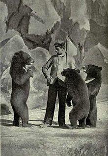 The Asiatic black bears are the comedians of the performing bears. They appear to appreciate applause and will intentionally move into their prescribed position late to attain laughter and attention. — Brown, The Influence of Bears on Humans[67]