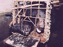 Asian black bears have been hunted for their parts in China since the Stone Age.[31] Bile is most appreciated, as it supposedly cures many diseases, effectively treats the accumulation of blood below the skin, and counters toxic effects.[70] Also, bear bone glue is used as a tonic, and bear fat is also used as a traditional medicine and a tonic. Asian black bear meat is also edible. Due to their many uses, Asian black bears are worth about 20–30 million dong (US$1,500–2,250) each in Vietnam.[15]