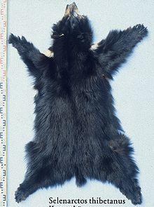 Accounts on the quality of the Asian black bear's fur vary. According to Natural History of the Mammalia of India and Ceylon, "Their skins are always poor and mangy, and generally so greasy that they are very difficult to keep until you can make them over to the dresser",[51] which is corroborated by The Great and Small Game of India, Burma, and Tibet, which states "... the skins are never of any particular value, and in autumn, owing to the masses of yellow fat that are accumulated beneath them, are absolutely useless."[13] In British India, grease was the only practical use for Asian black bear carcasses. Bears living near villages were considered the most ideal, as they were almost invariably fatter than their forest-dwelling counterparts.[68] In the former USSR, the Asian black bear yielded fur, meat and fat of greater quality than those of the brown bear.[3]