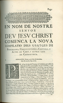 The Usages of Barcelona (Catalan: Usatges de Barcelona, IPA: [uˈzadʒəz ðə βəɾsəˈlonə]; Latin: Usatici Barchinonae) were the customs that form the basis for the Catalan Constitutions. They are the fundamental laws and basic rights of Catalonia, dating back to their codification in the twelfth century.