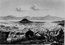 The Mormon settlements provided pioneers for other settlements in the West. Salt Lake City became the hub of a "far-flung commonwealth"[29] of Mormon settlements. With new church converts coming from the East and around the world, Church leaders often assigned groups of church members as missionaries to establish other settlements throughout the West. They developed irrigation to support fairly large pioneer populations along Utah's Wasatch front (Salt Lake City, Bountiful and Weber Valley, and Provo and Utah Valley).[30] Throughout the remainder of the 19th century, Mormon pioneers established hundreds of other settlements in Utah, Idaho, Nevada, Arizona, Wyoming, California, Canada, and Mexico—including in Las Vegas, Nevada; Franklin, Idaho (the first European settlement in Idaho); San Bernardino, California; Mesa, Arizona; Star Valley, Wyoming; and Carson Valley, Nevada.