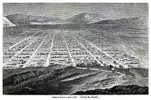 The Utah Territory was much smaller than the proposed state of Deseret, but it still contained all of the present states of Nevada and Utah as well as pieces of modern Wyoming and Colorado.[32] It was created with the Compromise of 1850, and Fillmore, named after President Millard Fillmore, was designated the capital. The territory was given the name Utah after the Ute tribe of Native Americans. Salt Lake City replaced Fillmore as the territorial capital in 1856.