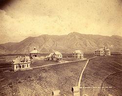 Meanwhile, after visiting a few rural agricultural schools in his native Denmark, Anthon H. Lund of the Utah Territorial Legislature decided that there existed in Utah a need for such a school fusing the highest in scientific and academic research with agriculture, the way of life for the vast majority of locals. Upon returning to the states, Lund heard about the Morrill Act, and pitched a vision for the college that would receive widespread support among the Territorial Legislature, who was at the time seeking to reapply for statehood.[32] Now there came the question of location. According to historian Joel Ricks in 1938, "Provo had received the Insane Asylum, Salt Lake City had the University and Capitol, and the majority of the legislature felt that the new institutions should be given to Weber and Cache Counties." Citizens in Logan, Cache County, banded together and successfully lobbied representatives for the honor. The bill to establish the Agricultural College of Utah was passed on March 8, 1888, and on September 2, 1890, 14-year-old Miss Vendla Berntson enrolled as its first student.[31][33]