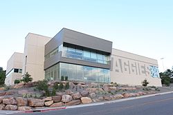 Formerly existing as a non-degree-granting institution within the College of Humanities, Arts & Social Sciences, the Caine College became a free-standing college on July 1, 2010.[97] The Caine College of the Arts houses the departments of Art & Design, Music, and Theatre Arts, along with the Nora Eccles Harrison Museum of Art.[98] Performance facilities include the Chase Fine Arts Center, which houses the Kent Concert Hall among other venues, and the free-standing Manon Caine Russell-Kathryn Caine Wanlass Performance Hall,[75] completed in 2006. The 400-seat Performance Hall, designed by the architectural firm Sasaki Associates, has been praised as one of the best acoustic performance spaces in the American West, and received an Honor Award from the Utah Chapter of the American Institute of Architects.[99] The Nora Eccles Harrison Museum of Art, designed by architect Edward Larrabee Barnes and opened in 1982, contains one of the largest art collections in the Intermountain Region. Its holdings include nationally significant collections of ceramics, Native American art, and especially artworks produced in the American West since 1945.[100]