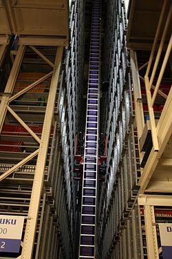Notable structures include Old Main, the college's first building, as well as the Merrill-Cazier Library, the 305,000 sq ft (28,300 m2) main university library, which houses more than 1,800,000 total volumes.[72] The library also boasts an extensive special collections and archives area, an automated storage and retrieval system, and more than 150 workstations and 33 group study rooms.[73][74] Also notable is the Manon Caine Russell-Kathryn Caine Wanlass Performance Hall, said to contain some of the best acoustics in the entire Western United States.[75]