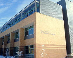 Much of USU's most widespread academic renown stems directly from the College of Engineering. USU houses the Space Dynamics Laboratory (SDL) which is a research facility focusing on military and science applications.[109] The SDL frequently submits projects to the Department of Defense and NASA.[110][111] According to recent National Science Foundation statistics, USU ranked first among all universities in the U.S. in funding for aerospace research.[112] USU has also won multiple national aerospace engineering competitions in the past, including two in the 2008–09 academic year alone.[113]