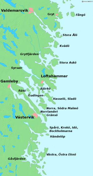 The municipalities of Västervik and (partially) Valdemarsvik belong to the Tjust region with an extensive coastal archipelago.