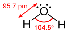 The difference between lone pairs and bonding pairs may also be used to rationalize deviations from idealized geometries. For example, the H2O molecule has four electron pairs in its valence shell: two lone pairs and two bond pairs. The four electron pairs are spread so as to point roughly towards the apices of a tetrahedron. However, the bond angle between the two O–H bonds is only 104.5°, rather than the 109.5° of a regular tetrahedron, because the two lone pairs (whose density or probability envelopes lie closer to the oxygen nucleus) exert a greater mutual repulsion than the two bond pairs.[1]:410–417[11]
