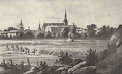 The mainly wooden and densely built town was almost utterly destroyed in 1852. A fire started in a barn belonging to district court judge J. F. Aurén on the morning of August 3. At noon the whole town was ablaze and the fire lasted for many hours. By evening, most of the town had burned to the ground. Out of 379 buildings only 24 privately owned buildings had survived, among them the Falander–Wasastjerna patrician house (built in 1780–1781) which now houses the Old Vaasa Museum.